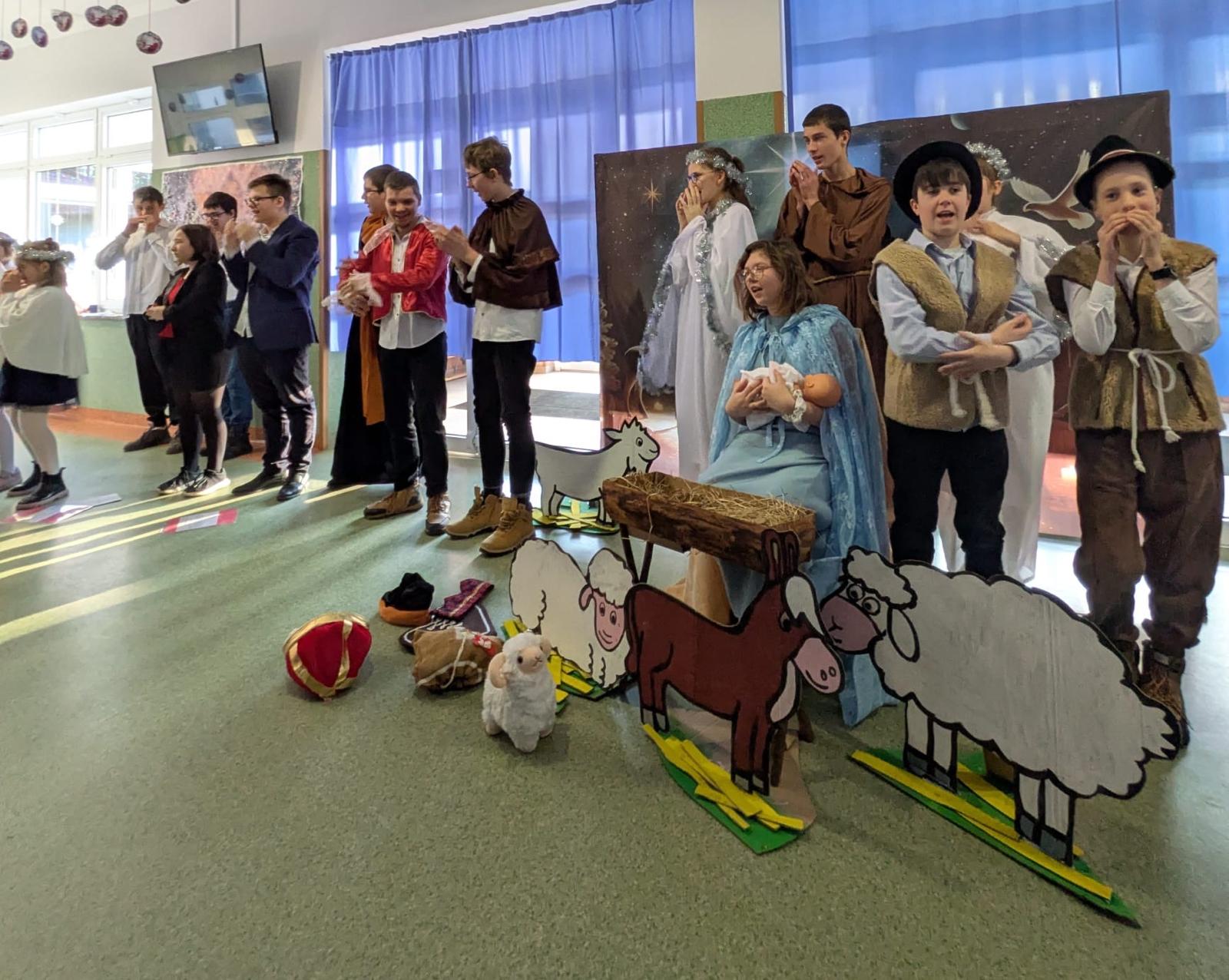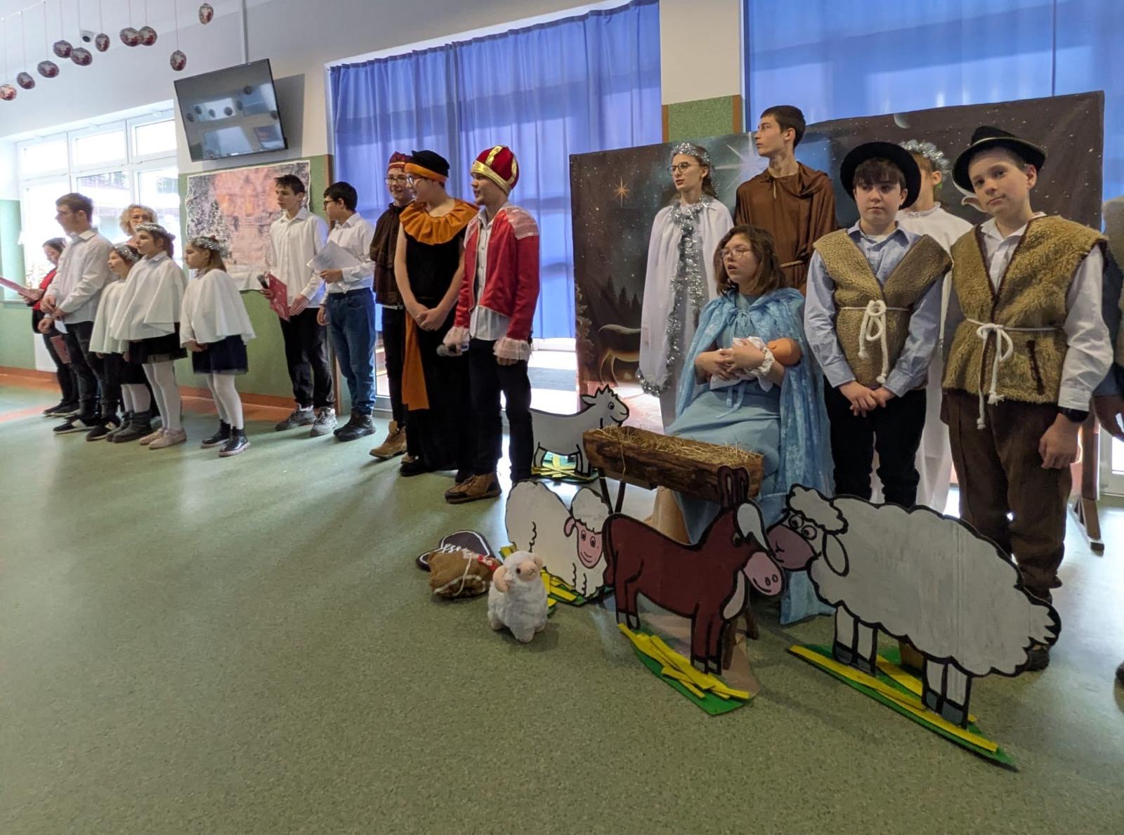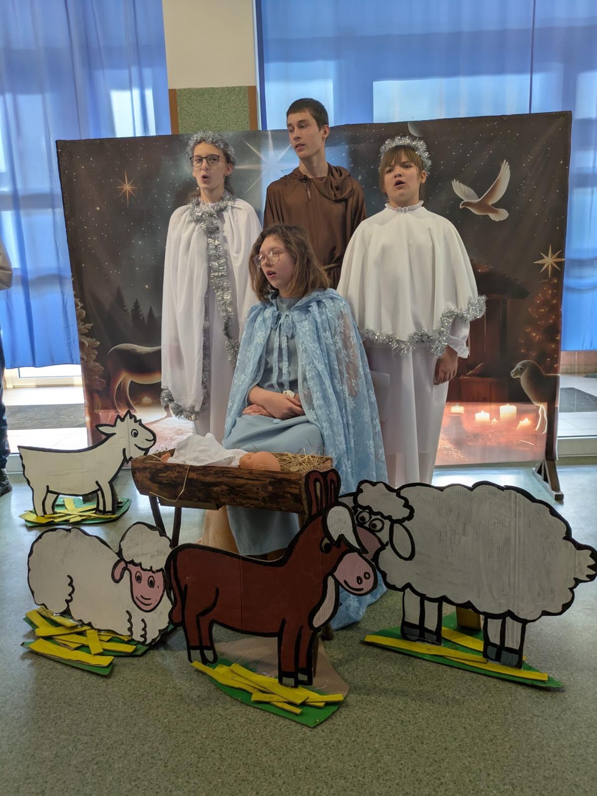 Centralnym punktem wydarzenia były jasełka, przygotowane przez uczniów, którzy z wielkim zaangażowaniem i wzruszeniem przedstawili historię narodzin Jezusa. Przedstawienie wprowadziło wszystkich w świąteczny nastrój i skłoniło do zadumy nad sensem Bożego Narodzenia.