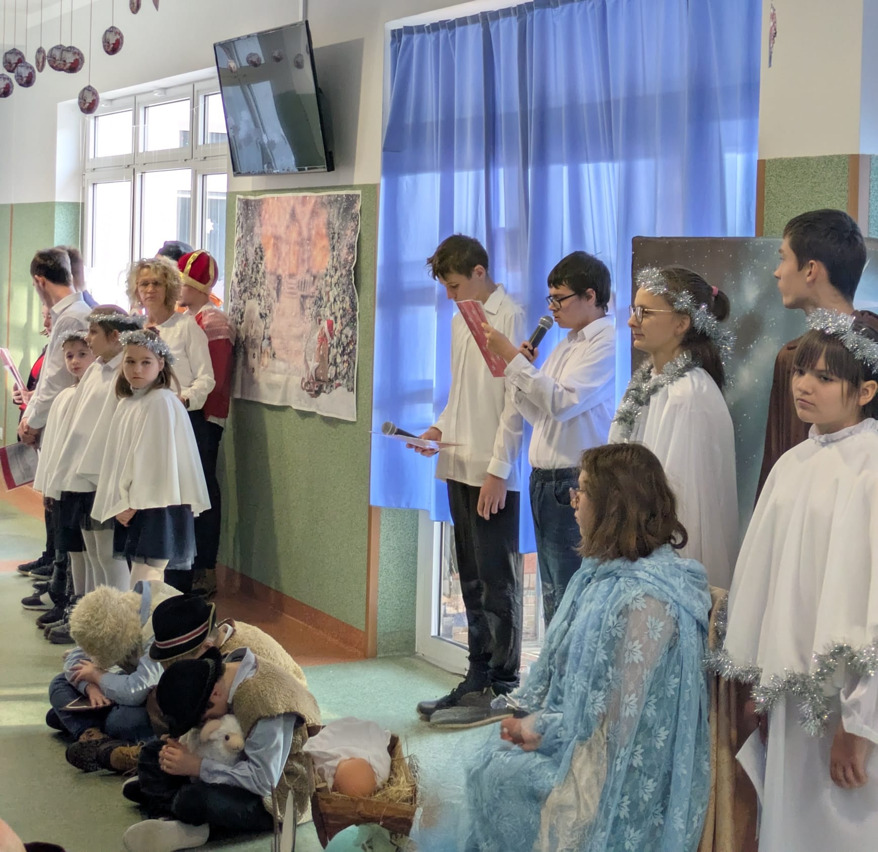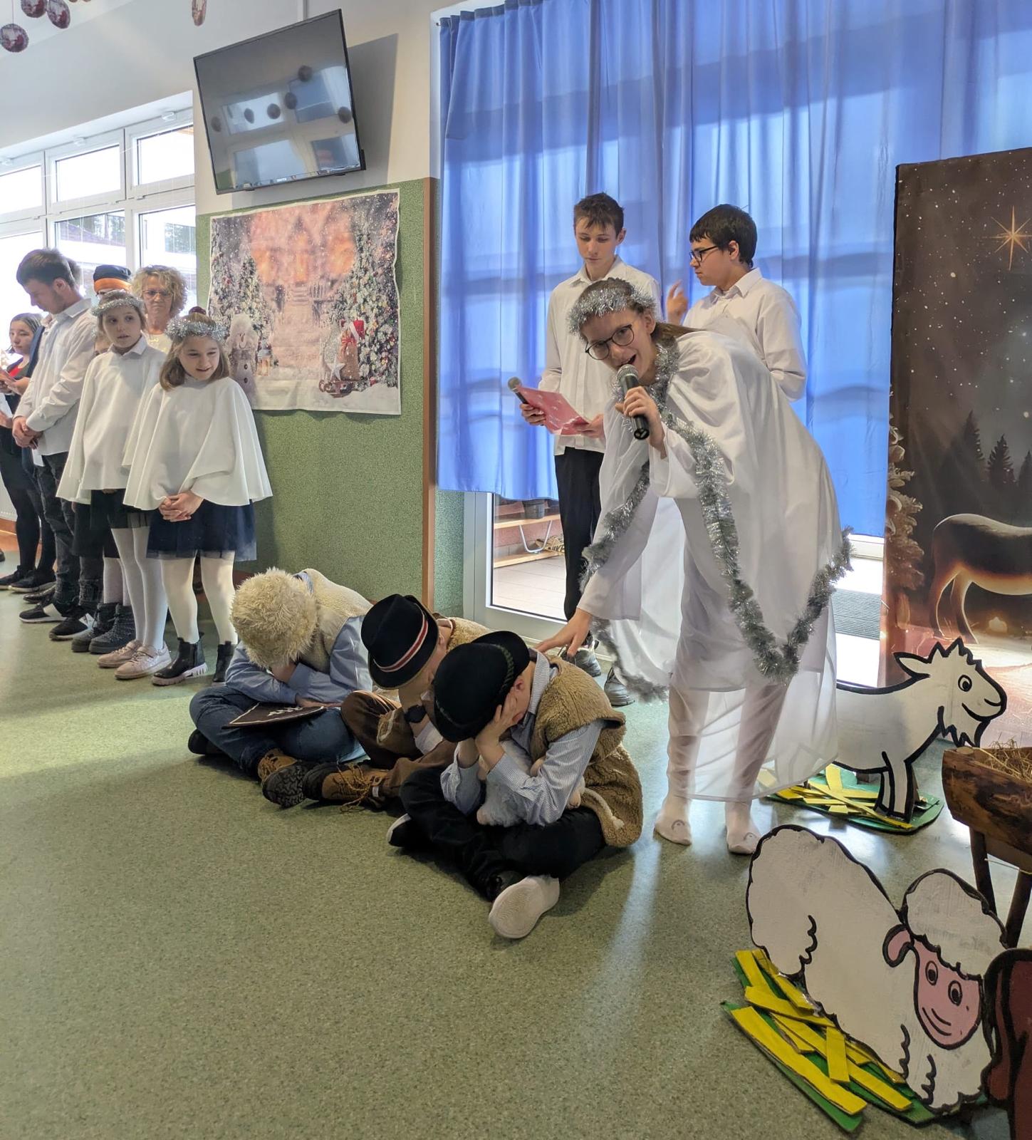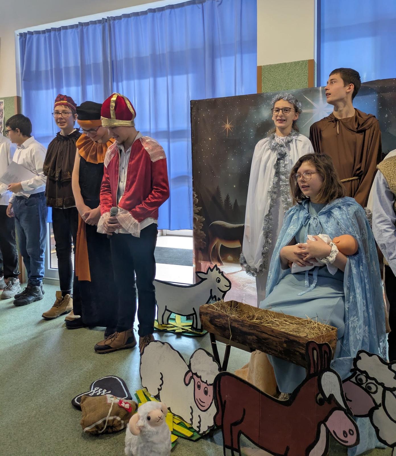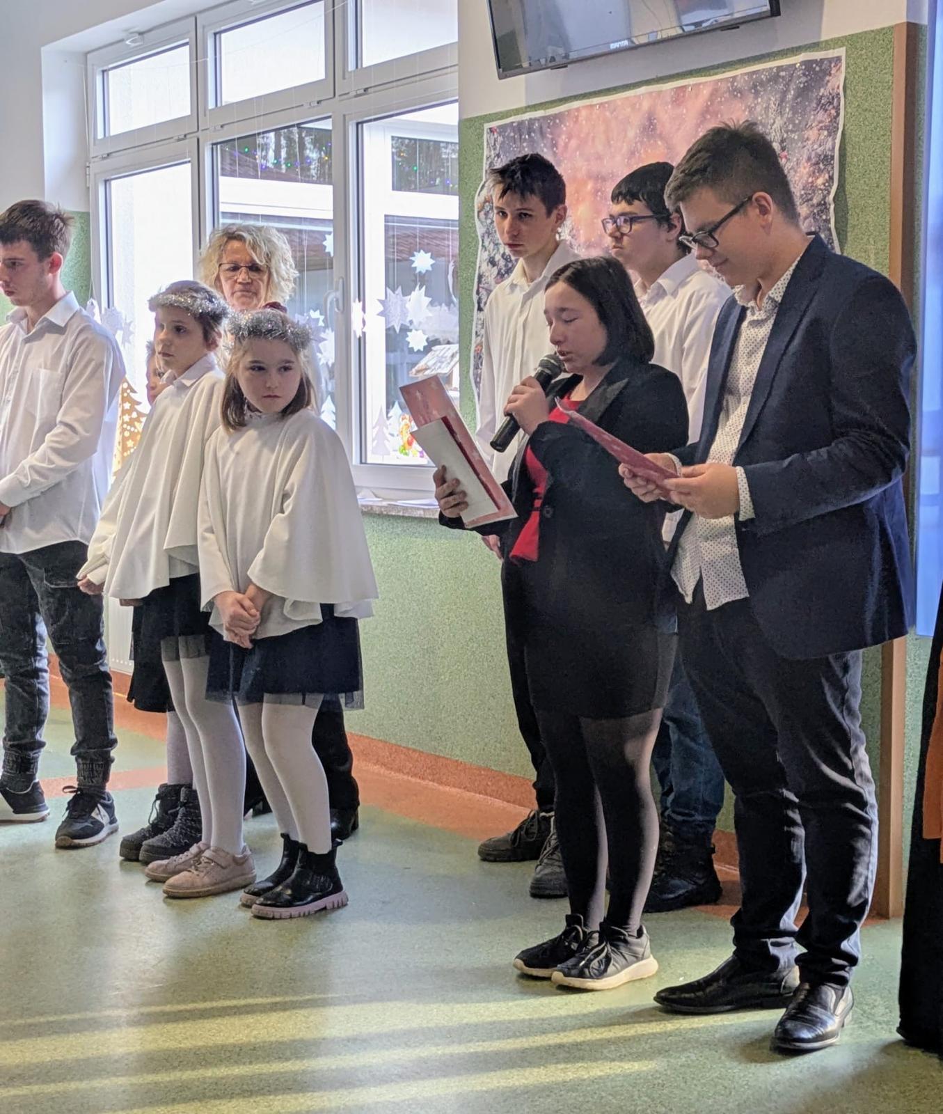 Centralnym punktem wydarzenia były jasełka, przygotowane przez uczniów, którzy z wielkim zaangażowaniem i wzruszeniem przedstawili historię narodzin Jezusa. Przedstawienie wprowadziło wszystkich w świąteczny nastrój i skłoniło do zadumy nad sensem Bożego Narodzenia.