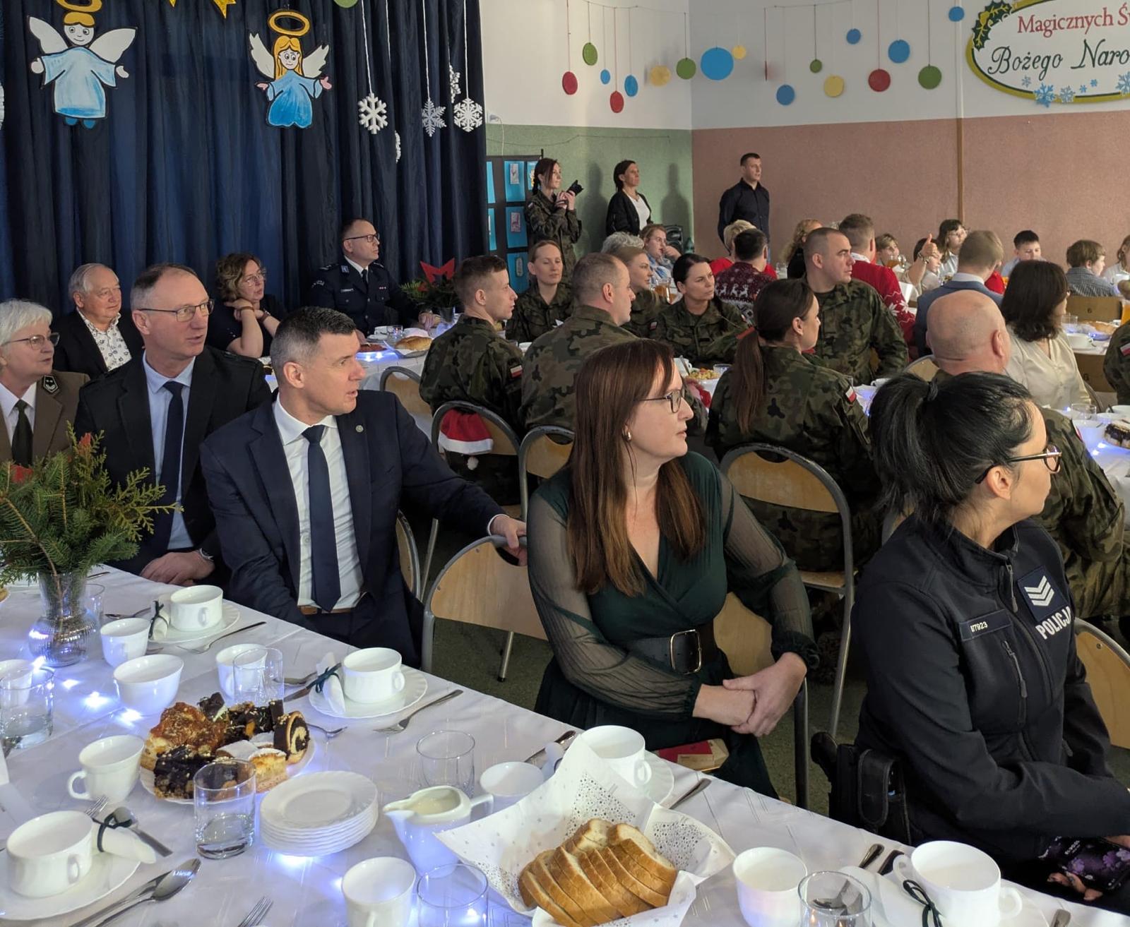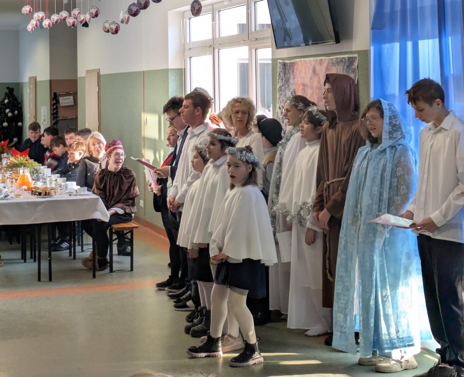 Nieodłącznym elementem spotkania było wspólne śpiewanie kolęd, które zjednoczyło uczniów, nauczycieli oraz zaproszonych gości, wśród których nie zabrakło przedstawicieli władz samorządowych, organu prowadzącego placówkę, przedstawicieli służb mundurowych, miejscowego proboszcza oraz pozostałych przyjaciół placówki. Dźwięki znanych i lubianych pieśni stworzyły atmosferę wspólnoty, radości i wzajemnej życzliwości.